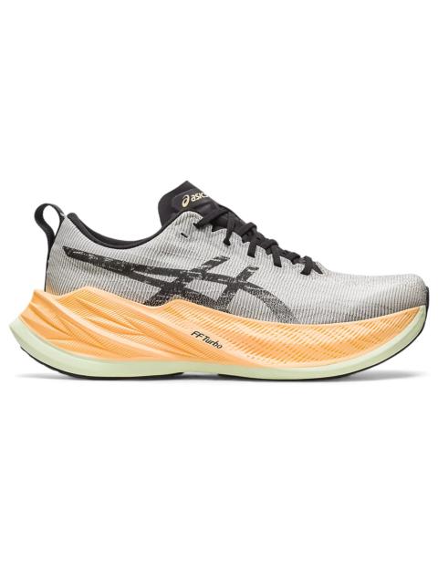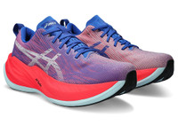 The SUPERBLAST™ shoe is the newest hero of the BLAST series. It creates a lightweight and responsive ride that makes it functional for long runs, tempo runs, and everything in between.This shoe's upper construction features an asymmetric mesh design. It features different colors on the medial and lateral angles of the shoe for visual interest.The midsole features a combination of FF BLAST™ PLUS and FF BLAST™ TURBO cushioning. Also used in our METASPEED™ racing models, this foam helps creates one of the lightest and bounciest running experiences. Style #: 1013A127.700 UPC #: 196074972388 Tech & Materials Jacquard woven upper material Improves airflow to help your feet keep cool. The heel stabilizer Helps support the foot and create a more balanced stride. Gusseted tongue wing fit system Improves the midfoot fit and reduces tongue sliding. FF BLAST TURBO™ cushioning Improves compression and creates a responsive feel underfoot. FF BLAST™ PLUS cushioning Provides lightweight impact absorption and a responsive rebound. Trampoline-inspired outsole design Provides a more responsive bounce back. AHARPLUS™ outsole rubber Improves the outsole durability. The sockliner is produced with the solution dyeing process that reduces water usage by approximately 33% and carbon emissions by approximately 45% compared to the conventional dyeing technology. Reflective details are designed to improve visibility in low-light settings.