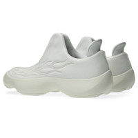 The ASICS-ONE sneaker that was designed in conjunction with Japanese musician, Taka from the band ONE OK ROCK. The concept for this project was centered around developing a shoe that helps stabilize the body during various movements while promoting good posture so that Taka can sound his best while singing. Key details on the shoes include easy on and off functionality, supportive components, and a strategically designed sole. A soft, lightweight mesh is reinforced by a TPU cage with a flame pattern on the upper to help increase stability during various movements. In the sole, its wavy forefoot shape helps increase flexibility while the wrap-up sidewall and heel design help to increase stability during various movements. Style #: 1203A809.100 UPC #: None Tech & Materials Supportive TPU cage Wavy forefoot shape for flexibility Soft, light mesh upper Wrap-up sidewall for stability