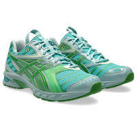 Curated style by Kiko Kostadinov Studio and ASICS® SportStyle development team. The UB9-S GEL-DS TRAINER® 14 sneaker draws design inspiration from the ideas of decoupage and natural simulacrum. These details reflect nature's imprint and its impact of discarded and reclaimed objects in natural landscapes. Opaque and bright colors are contrasted with matte hues to highlight the connection between nature and humanity. The upper's layered materials are symbolic of fossils and petrology while the moire surfaces reflect the surfaces of ready-made everyday objects. This midsole's tooling shape features a sleeker construction that's met with comfortable cushioning properties. Its lightweight design is also paired with a TRUSSTIC® support unit for stability and rearfoot GEL® technology for impact absorption. Style #: 1203A606.300 UPC #: None Tech & Materials Asymmetric upper construction Breathble mesh underlays Rearfoot GEL® technology Improves impact absorption TRUSSTIC® support system Helps improve stability At least 30% of the upper's synthetic fiber is made with recycled materials