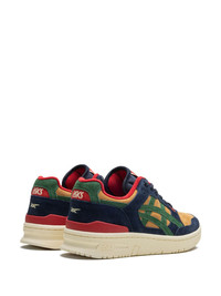 x Kith EX89 "Total Eclipse" sneakers The ASICS EX89 sneakers are reimagined in a bold and playful "Total Eclipse" colourway, designed in collaboration with New York-based streetwear brand Kith. They're crafted with a supple suede upper in a nature-inspired colour palette and are detailed with both label's logos on the tongue and heel counter. Highlights - Multicolour - Suede - Colour-block panelled design - Round toe - Perforated toebox - Front lace-up fastening - Logo patch at the tongue - Branded heel counter - Flat rubber sole - These styles are supplied by a premium and authenticated sneaker marketplace. stocking only the most sought-after footwear, they source and curate some of the most hard to find sneakers from around the world. Made in Italy Composition Suede 100%