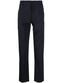 button-fastening tailored trousers Highlights - Navy blue - Stretch-design - Belt loops - Front button fastening - Two side slit pockets - Two rear jetted pockets - Tailored cut Made in Italy Composition Polyester 53%, Virgin Wool 43%, Spandex/Elastane 4% Washing instructions Hand Wash