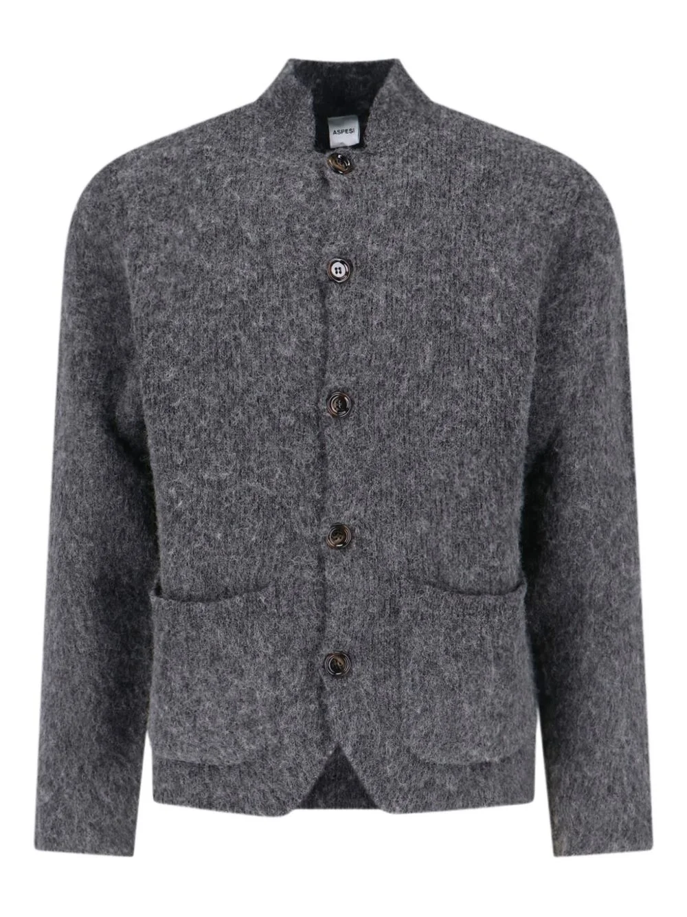 button-up patch-pocket cardigan Highlights - Grey - Button fastening - Two front pockets - Stand-up collar - Long sleeves - Straight hem Imported Composition Wool 100% Washing instructions Read Manufacturer Guidelines