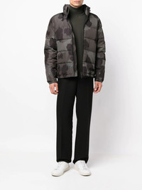 camouflage-print padded jacket Highlights - Grey - Padded design - Down-feather filling - Funnel neck - Front zip fastening - Long sleeves Imported Composition Outer: Polyester 100% Lining: Polyamide 100%, Feather Down 100% SIZE & FIT Model measurements Height 6 ft 1 in(1.85 m) Bust/Chest 35.82 in(91 cm) Hips 37.79 in(96 cm) Waist 29.13 in(74 cm) FittingInformation This piece fits true to size. We recommend you get your regular size Cut for a loose fit Made with a mid-weight non-stretch fabric Washing instructions Dry Clean Only