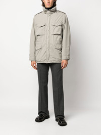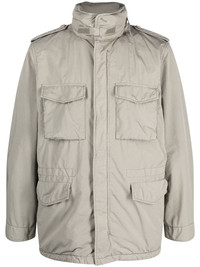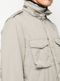 Newcamp military jacket Highlights - Grey - Band collar - Classic hood - Front press-stud and zip fastening - Epaulettes - Long sleeves - Two chest flap pockets - Two front flap pockets - Straight hem Imported Composition Outer: Polyester 65%, Polyamide 35% Lining: Polyester 100% SIZE & FIT Model measurements Height 6 ft 2 in(1.89 m) Bust/Chest 37.79 in(96 cm) Hips 37 in(94 cm) Waist 29.92 in(76 cm) Measurement CHEST 50.39 in(128 cm) SLEEVE LENGTH 36.22 in(92 cm) Shoulder Width 19.68 in(50 cm) Washing instructions Machine Wash