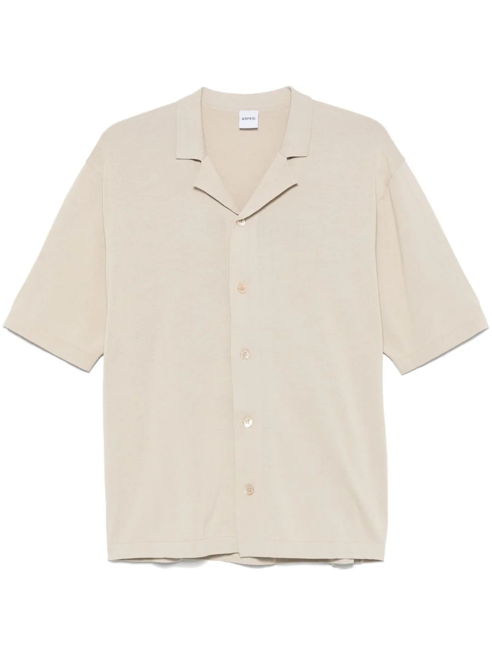 cotton shirt Highlights - Light beige - Front button fastening - Ribbed cuffs and hem - Camp collar - Short sleeves Imported Composition Cotton 100% SIZE & FIT Model measurements Height 6 ft 2 in(1.87 m) Bust/Chest 38.18 in(97 cm) Hips 36.61 in(93 cm) Waist 29.13 in(74 cm) FittingInformation Designed for a relaxed fit, this piece allows for comfort and movement when worn Made with a midweight knit, this piece offers some stretch