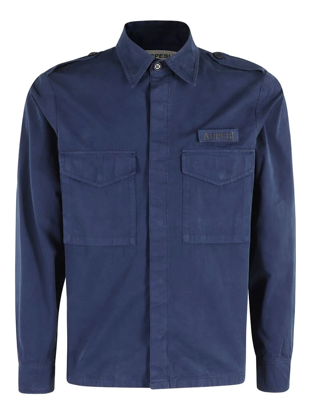 cotton shirt jacket Highlights - Indigo blue - Concealed front button fastening - Two chest flap pockets - Applique logo - Epaulettes Imported Composition Cotton 100%