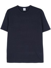 knitted T-shirt Highlights - Navy blue - Cotton-silk blend - Fine knit - Ribbed crew neck - Short sleeves - Straight hem Imported Composition Cotton 85%, Silk 10%, Linen/Flax 5%