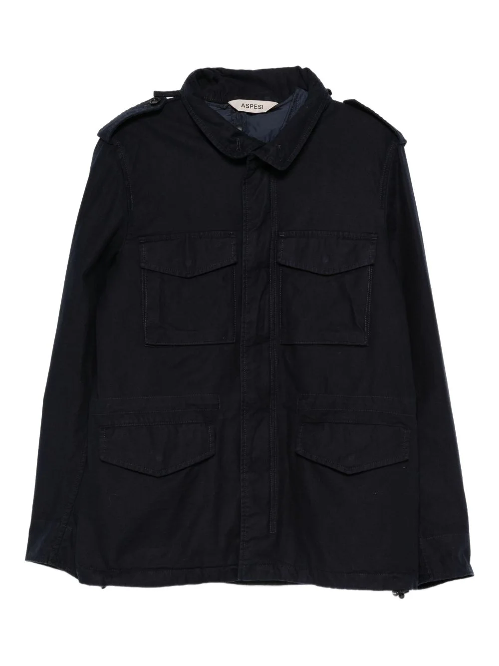 drawstring jacket Highlights - Navy blue - Concealed front closure - Long sleeves - Epaulettes - Four front flap pockets Imported Composition Cotton 100% SIZE & FIT Model measurements Height 6 ft 1 in(1.85 m) Bust/Chest 35.82 in(91 cm) Hips 37.79 in(96 cm) Waist 29.13 in(74 cm) Washing instructions Read Manufacturer Guidelines