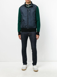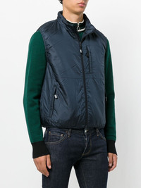 navy blue padded design branded zip puller high neck front two-way zip fastening sleeveless zip-fastening chest pocket two side zip pockets elasticated hem straight hem - Color: BLUE - Made in: Romania - Designer Style ID: G199 7961 96101 Composition and care Outer Composition Polyamide: 100.0%, Lining Composition Polyamide: 100.0%, Lining Composition Polyester: 100.0%