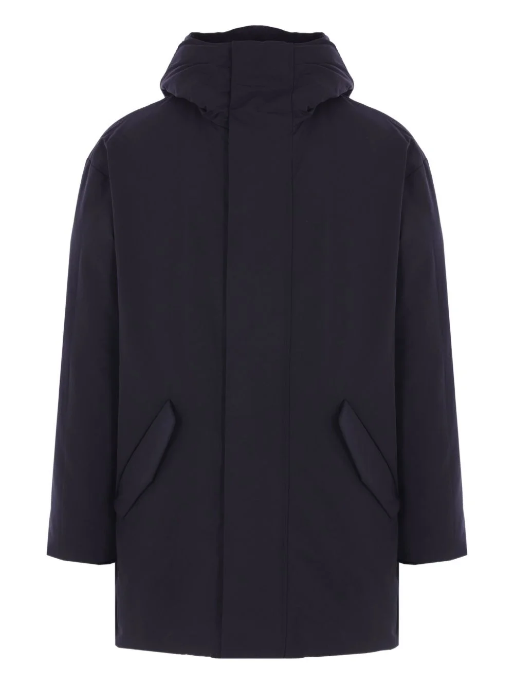 hood padded coat Highlights - Navy blue - Padded - Flap pockets - Concealed zip - Snap button closure Imported Composition Cotton 100% Washing instructions Read Manufacturer Guidelines