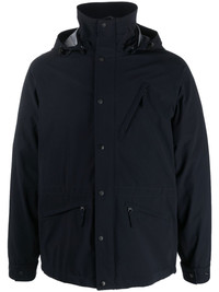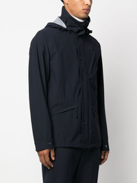 hooded press-stud fastening jacket navy blue classic hood front press-stud fastening long sleeves zip-fastening chest pocket front zip fastening pockets Imported Composition Outer: Polyamide 66%, Spandex/Elastane 21%, Polyester 13% Lining: Polyester 100%, Polyamide 100% SIZE & FIT Model measurements Height 6 ft 2 in(1.88 m) Bust/Chest 36.61 in(93 cm) Hips 37.79 in(96 cm) Waist 28.74 in(73 cm) FittingInformation This piece fits true to size. We recommend you get your regular size Cut for a loose fit Made with a mid-weight fabric Washing instructions Hand Wash