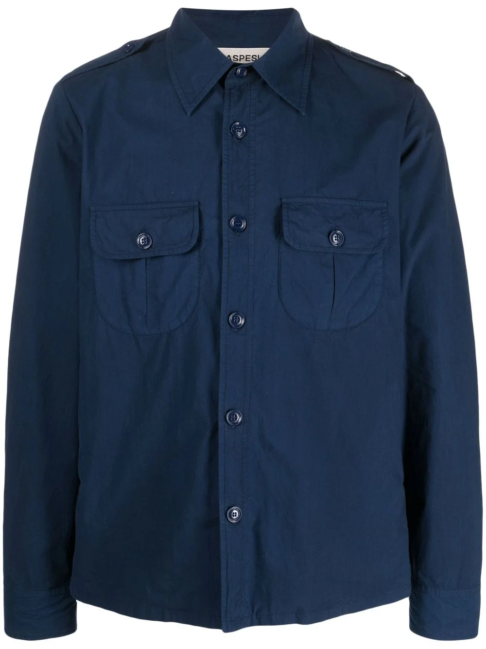 long-sleeve cotton shirt Highlights - Prussian blue - Cotton - Pointed flat collar - Front button fastening - Two button-fastening chest pockets - Long sleeves - Buttoned-cuff sleeves - Straight hem Imported Composition Cotton 100% SIZE & FIT Model measurements Height 6 ft 0 in(1.84 m) Bust/Chest 35.82 in(91 cm) Hips 37 in(94 cm) Waist 28.34 in(72 cm) FittingInformation Designed to be unstructured, offering a loose fit throughout Made from a midweight non-stretch fabric This piece fits true to size – take your usual size