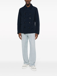 long-sleeve double-breasted jacket Highlights - Navy blue - Spread collar - Double-breasted button fastening - Long sleeves - Two side inset pockets - Straight hem Imported Composition Outer: Polyester 70%, Polyamide 30% Lining: Polyester 100% SIZE & FIT Model measurements Height 6 ft 0 in(1.84 m) Bust/Chest 36.22 in(92 cm) Hips 35.43 in(90 cm) Waist 26.77 in(68 cm) FittingInformation Designed for a slim fit, offering a comfortable fit that sits just away from the body The vented hem offers movement at the rear Made from a padded non-stretch fabric, giving it no natural elasticity This piece fits true to size – take your usual size Washing instructions Machine Wash
