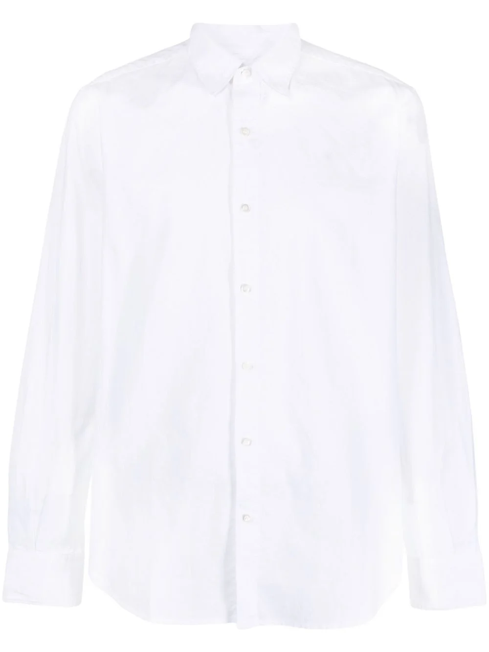long-sleeved plain shirt White cotton long-sleeved plain shirt from Aspesi featuring a classic collar, a front button fastening, long sleeves, button cuffs, a chest pocket and a curved hem. Imported Composition Cotton 100% SIZE & FIT Model measurements Height 6 ft 2 in(1.88 m) Bust/Chest 36.61 in(93 cm) Hips 37.79 in(96 cm) Waist 28.74 in(73 cm) Washing instructions Machine Wash