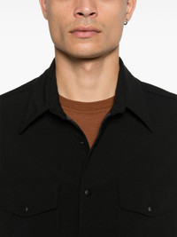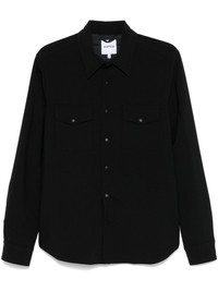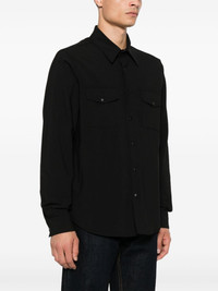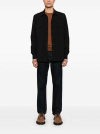 flannel shirt jacket Highlights - Black - Long sleeves - Front press-stud fastening - Classic collar - Press-stud fastening cuffs - Two chest flap pockets - Two side inset pockets - Full lining - Curved hem Made in Italy Composition Outer: Polyester 53%, Virgin Wool 43%, Elastane 4% Lining: Polyamide 100%, Polyester 100% SIZE & FIT Model measurements Height 6 ft 1 in(1.85 m) Bust/Chest 35.82 in(91 cm) Hips 37.79 in(96 cm) Waist 29.13 in(74 cm) FittingInformation Designed for a regular fit, allowing for a comfortably loose fit throughout the body Made from a midweight fabric
