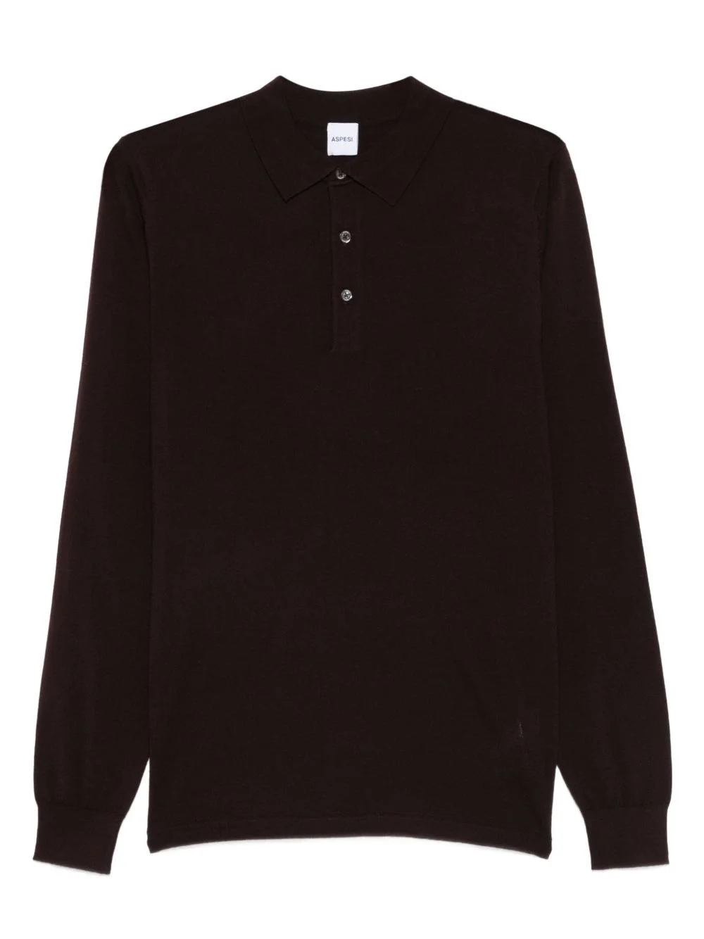 long-sleeve wool polo shirt Highlights - Brown - Wool - Long sleeves - Panelled yoke - Straight hem Imported Composition Virgin Wool 100% Washing instructions Hand Wash