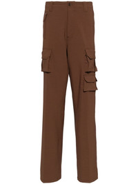 multi-pocket straight leg trousers Highlights - Chocolate brown - Front button and zip fastening - Belt loops - Two side slash pockets - Front zip-fastening pocket - Four front cargo pockets - Rear cargo pocket - Straight leg Made in Italy Composition Polyester 53%, Virgin Wool 43%, Elastane 4% SIZE & FIT Model measurements Height 6 ft 2 in(1.88 m) Bust/Chest 34.25 in(87 cm) Hips 34.64 in(88 cm) Waist 26.77 in(68 cm) FittingInformation Designed for a straight-leg, allowing for an unrestricted and comfortable fit over the leg Made from a midweight stretch fabric, this piece offers elasticity and flexibility when worn