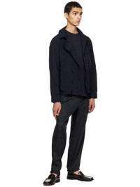 Polyester and nylon-blend poplin jacket. · Paneled construction · Throat guard at spread collar · Button closure · Concealed zip pockets at chest · Welt pockets at waist · Adjustable single-button barrel cuffs Supplier color: Navy 65% polyester, 35% polyamide.