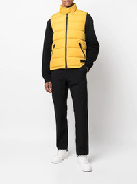 padded down gilet yellow down-feather filling padded design logo patch to the front front two-way zip fastening stand-up collar sleeveless two side zip-fastening pockets drawstring hem straight hem Imported Composition Lining: Feather Down 100%, Polyamide 100% Outer: Polyamide 100% SIZE & FIT Model measurements Height 6 ft 2 in(1.87 m) Bust/Chest 38.18 in(97 cm) Hips 36.61 in(93 cm) Waist 29.13 in(74 cm) FittingInformation This piece fits true to size. We recommend you get your regular size Cut for a slim fit Made with a lightweight non-stretch fabric
