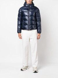 padded feather-down hooded jacket Highlights - Navy blue - Feather down - Padded design - Classic hood - Front zip fastening - Long sleeves - Two side zip-fastening pockets - Straight hem Imported Composition Lining: Polyamide 100%, Down 80%, Feather 20% Outer: Polyamide 100% SIZE & FIT Model measurements Height 6 ft 2 in(1.88 m) Bust/Chest 37.79 in(96 cm) Hips 35.82 in(91 cm) Waist 29.92 in(76 cm) FittingInformation Designed for a slim fit, offering a comfortable fit that sits just away from the body The adjustable drawstring means that you can adjust this piece’s fit to suit your comfort and preference Made from a padded non-stretch fabric, giving it no natural elasticity This piece fits true to size – take your usual size Washing instructions Machine Wash