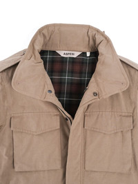 patch pocket jacket Highlights - Sand beige - Concealed front press-stud fastening - Four front patch pockets - Stand-up collar - Concealed hood - Checked lining Imported Composition Cotton 45%, Polyamide 39%, Polyester 16%