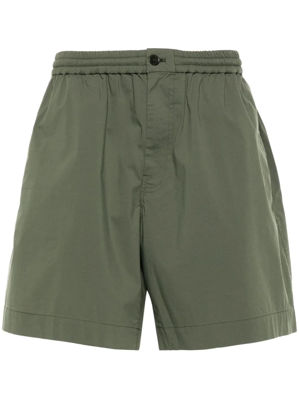 poplin bermuda shorts Highlights - Military green - Cotton blend - Poplin texture - Elasticated waistband with internal drawstring - Two side inset pockets - Two rear patch pockets - Unlined - Mid-length - Concealed fly and button fastening Made in Italy Composition Cotton 62%, Polyamide 35%, Spandex/Elastane 3% SIZE & FIT Model measurements Height 6 ft 2 in(1.87 m) Bust/Chest 36.41 in(92.5 cm) Hips 35.43 in(90 cm) Waist 29.52 in(75 cm) FittingInformation Designed with a wide leg, offering a loose and roomy fit The elasticated waist allows for a comfortable fit Made from a midweight stretch fabric, this piece offers elasticity and flexibility when worn This piece fits true to size – take your usual size