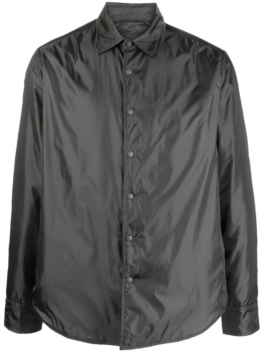 press-stud shirt-jacket charcoal grey classic collar front button fastening front press-stud fastening long sleeves curved hem Made in Italy Composition Outer: Polyamide 100% Lining: Polyamide 100%, Polyester 100% SIZE & FIT Model measurements Height 6 ft 2 in(1.87 m) Bust/Chest 38.18 in(97 cm) Hips 36.61 in(93 cm) Waist 29.13 in(74 cm) Washing instructions Machine Wash