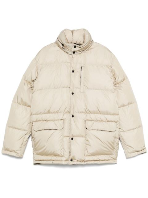 quilted puffer jacket Highlights - Quilted - Almond beige - Duck down - Padded design - Quilted - Front press-stud and zip fastening - Concealed hood - Stand-up collar - Long sleeves - Elasticated cuffs - Zip-fastening chest pocket - Two front flap pockets - Full lining - Straight hem Imported Composition Outer: Polyamide 100% Lining: Polyamide 100%, Down 80%, Feather 20% Washing instructions Machine Wash