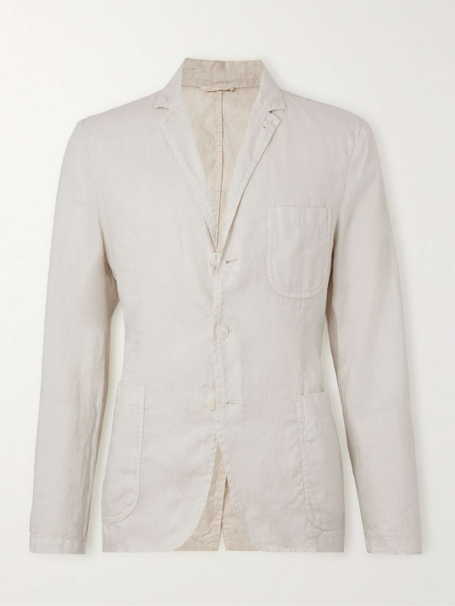 Aspesi's blazer is tailored from incredibly lightweight linen, making it the ideal piece for warm-weather occasions. It's left unlined and features patch pockets at the front to give it a casual and relaxed feel. Size & Fit - Fits true to size. Take your normal size - Tailored for a regular fit - Lightweight, non-stretchy fabric - Model is shown wearing a M - Model measures: chest 38"/ 96cm, height 6'2"/ 188cm Details & Care - White linen - Notch lapels, chest and front patch pockets, single vent - Button fastenings - 100% linen - Machine wash - Mother-of-pearl: Sudan - Made in Italy