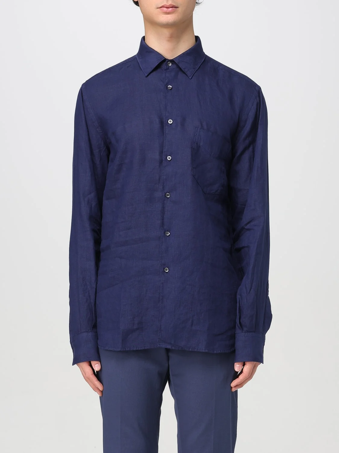 DESCRIPTION - Style: Classic - Neck: French - Shoulders: Regular - Closure: With buttons - Pockets: Patch pocket - Bottom: With curved hemline - Sleeves: Long sleeve shirts - Materials: Linen - Pattern: Plain-colored DETAILS AND CARE Composition 100% LINO SIZE AND FIT Sizes not available Size and fit Regular fit Designer code: ACE36C195 85096 Giglio Code: G77798 Designer: Aspesi Collection: Aspesi Men Category: Clothing Aspesi