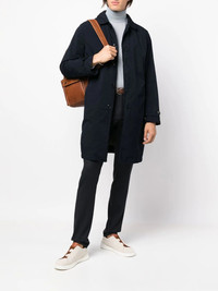 slim-cut tailored trousers navy blue wool blend mid-rise tailored cut slim cut slip pockets to the sides Made in Italy Composition Wool 58%, Polyester 38%, Spandex/Elastane 4% SIZE & FIT Model measurements Height 6 ft 2 in(1.89 m) Bust/Chest 37.79 in(96 cm) Hips 37 in(94 cm) Waist 29.92 in(76 cm) FittingInformation This piece fits true to size. We recommend you get your regular size Cut for a slim fit Made with a mid-weight stretch fabric Washing instructions Machine Wash