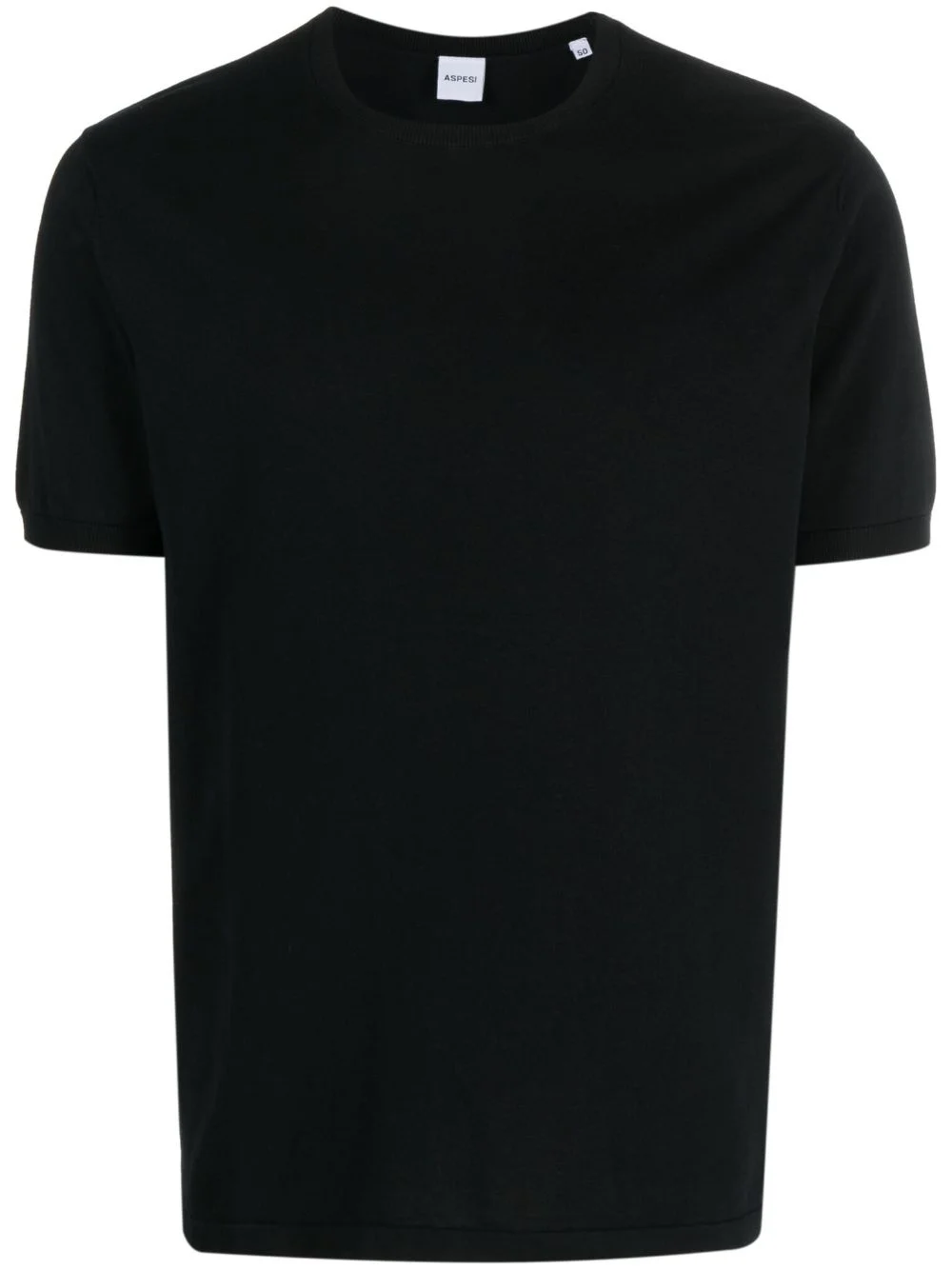 slim fit T-shirt Black cotton slim fit T-shirt from Aspesi featuring a ribbed round neck, short sleeves, ribbed cuffs and a straight hem. Made in Italy Composition Cotton 100% SIZE & FIT Model measurements Height 6 ft 1 in(1.86 m) Bust/Chest 37.4 in(95 cm) Hips 36.22 in(92 cm) Waist 29.52 in(75 cm) FittingInformation Designed for a relaxed fit, this piece allows for comfort and movement when worn Made from a midweight non-stretch fabric, this piece offers minimal elasticity when worn This piece fits true to size – take your usual size