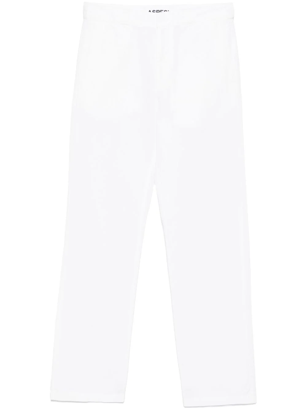 straight-leg chinos Highlights - White - Concealed front button, hook and zip fastening - Belt loops - Two side slit pockets - Two rear welt pockets Imported Composition Cotton 74%, Linen/Flax 26%