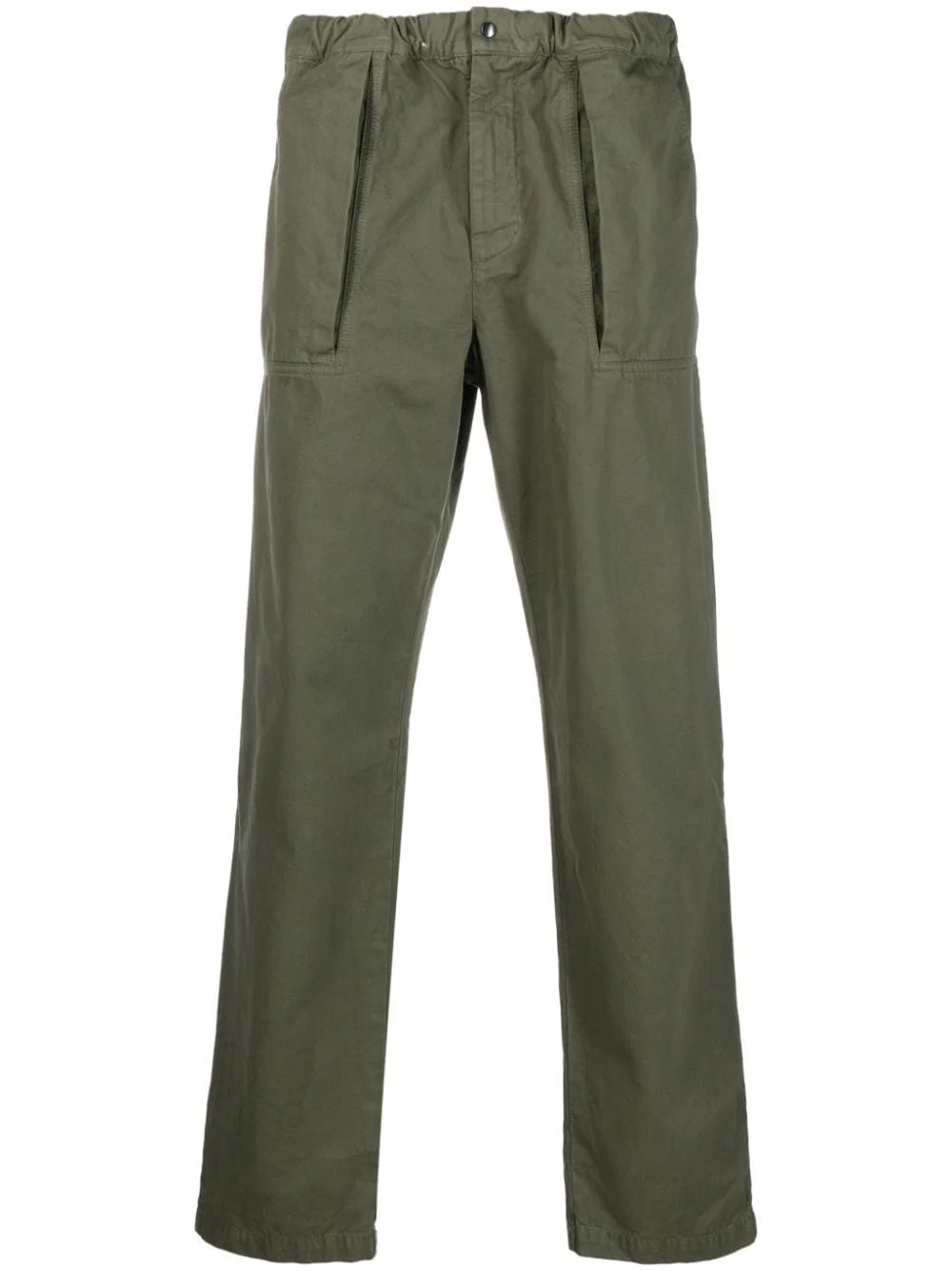 straight-leg cotton trousers Highlights - Dark green - Cotton - Elasticated waistband - Concealed front press-stud fastening - Straight leg - Two front patch pockets - Two rear patch pockets Imported Composition Cotton 100% Washing instructions Machine Wash