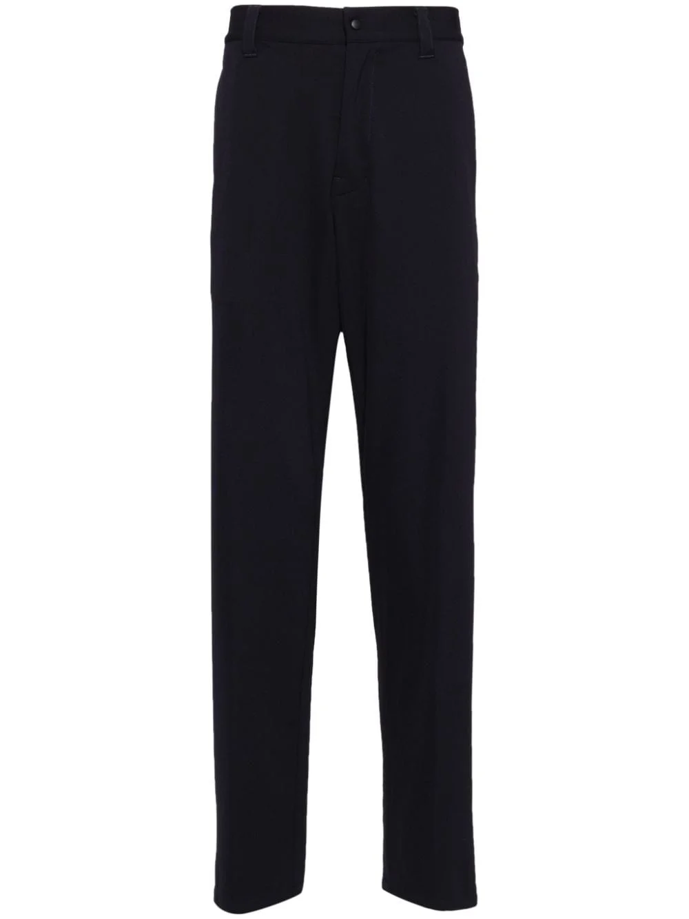 stretch straight leg trousers Highlights - Dark blue - Twill weave - Belt loops - Front button and zip fastening - Two side slash pockets - Rear elasticated waistband - Rear zip-fastening pocket - Straight leg Made in Italy Composition Nylon 80%, Spandex/Elastane 20% SIZE & FIT Model measurements Height 6 ft 2 in(1.88 m) Bust/Chest 34.25 in(87 cm) Hips 34.64 in(88 cm) Waist 26.77 in(68 cm) FittingInformation Designed for a slim fit, offering a comfortable fit that sits just away from the leg The partially elasticated waistband offers increased movement and comfort at the waist Made from a midweight stretch fabric, this piece offers elasticity and flexibility when worn