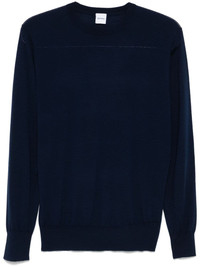 wool sweater Highlights - Navy blue - Virgin wool - Fine knit - Ribbed trim - Crew neck - Long sleeves - Straight hem Imported Composition Virgin Wool 100% SIZE & FIT Model measurements Height 6 ft 1 in(1.85 m) Bust/Chest 35.82 in(91 cm) Hips 37.79 in(96 cm) Waist 29.13 in(74 cm) FittingInformation Designed for a relaxed fit, this piece allows for comfort and movement when worn The ribbed hem offers a close, comfortable fit Made with a midweight knit, this piece offers some stretch