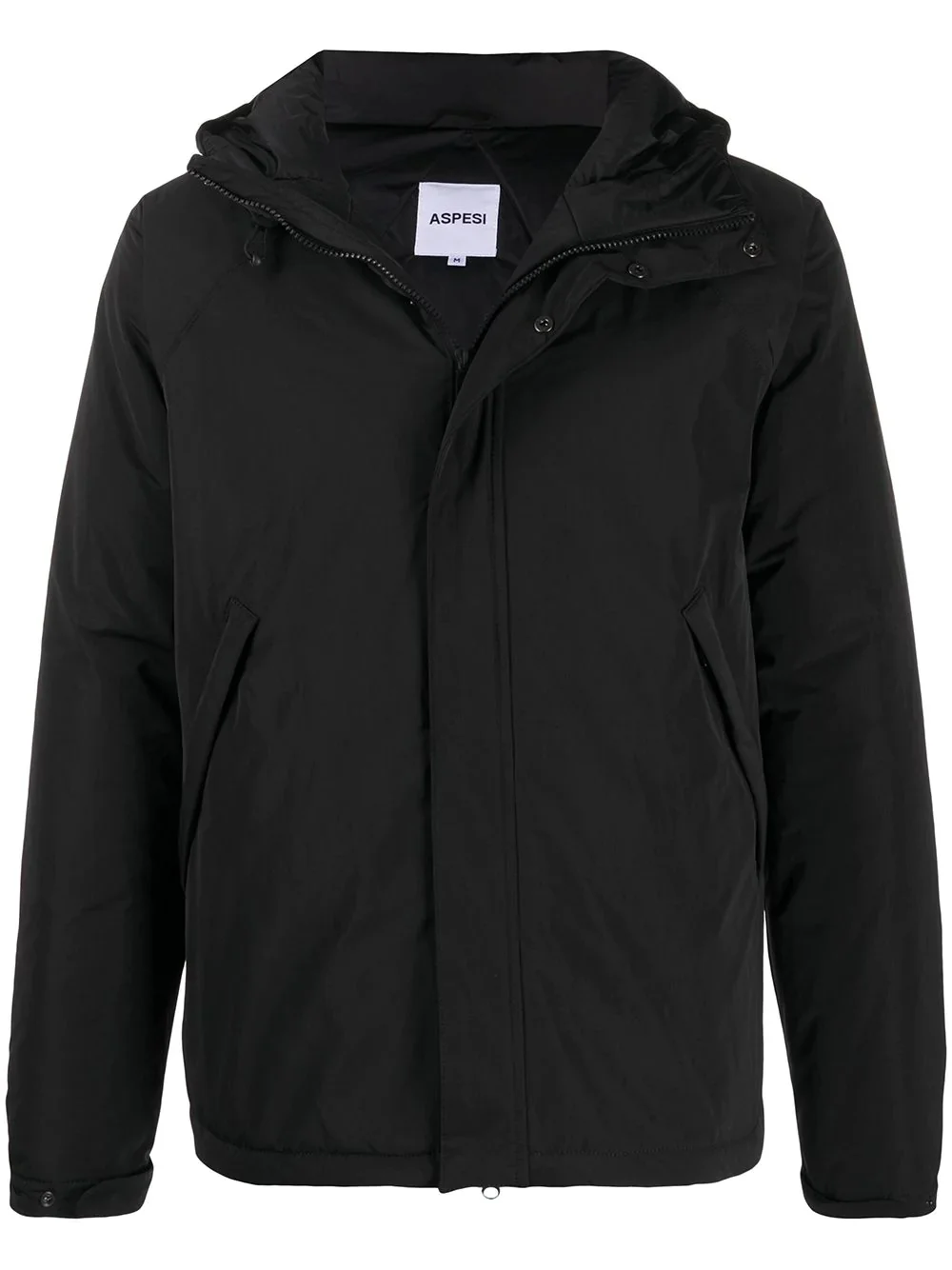 zip-up hooded jacket black nylon and polyester-blend classic hood front zip fastening long sleeves fitted silhouette Imported Composition Lining: Nylon 100%, Polyester 100% Outer: Polyester 100% SIZE & FIT Model measurements Height 6 ft 1 in(1.86 m) Bust/Chest 35.43 in(90 cm) Hips 35.43 in(90 cm) Waist 29.92 in(76 cm) FittingInformation This piece fits true to size. We recommend you get your regular size Cut for a loose fit Made with a mid-weight non-stretch fabric Washing instructions Machine Wash