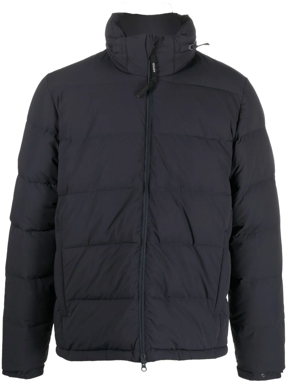 padded funnel-neck jacket Highlights - Midnight blue - Feather down - Padded design - Funnel neck - Front zip fastening - Long sleeves - Side two-way zip fastening Imported Composition Lining: Feather Down 100%, Polyamide 86%, Spandex/Elastane 14% Outer: Polyamide 86%, Spandex/Elastane 14% SIZE & FIT Model measurements Height 6 ft 2 in(1.87 m) Bust/Chest 36.41 in(92.5 cm) Hips 37 in(94 cm) Waist 29.52 in(75 cm) FittingInformation This piece fits true to size. We recommend you get your regular size Cut for a slim fit Made with a mid-weight stretch fabric Washing instructions Machine Wash