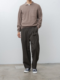Linen Wool Brushed Zip Up Polo Sweater - Camel