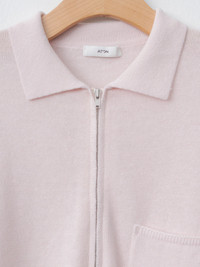 Linen Wool Brushed Zip Up Polo Sweater - Pink