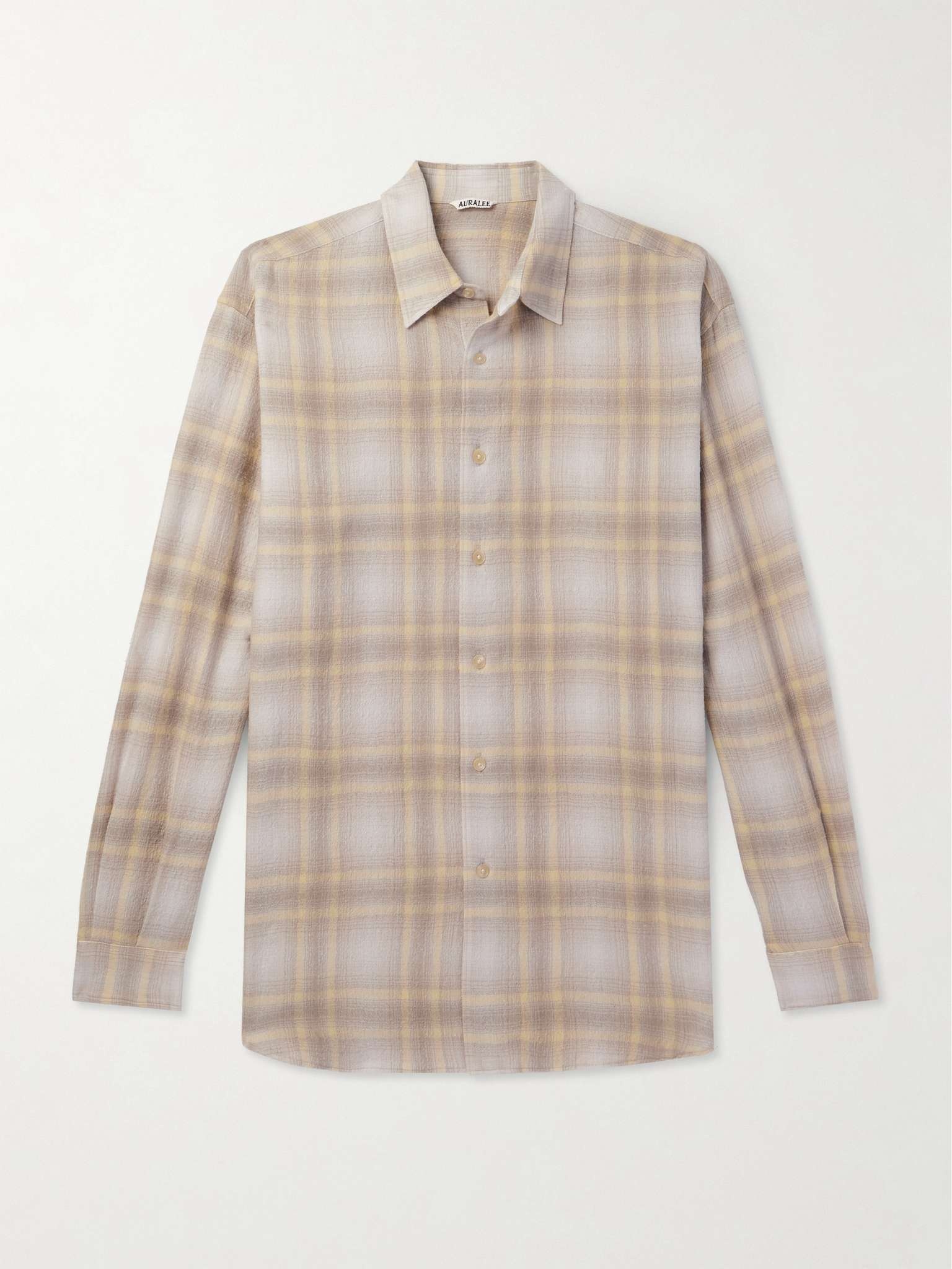 Each Auralee piece is designed with a key focus on fabric and fit. Cut in a relaxed shape, this ‘Airy’ shirt is made from soft wool-flannel patterned with a muted check. Size & Fit - Size 3 = XS, 4 = S, 5 = M - Model wears a size smaller to achieve a closer fit - Designed for a relaxed fit - Mid-weight, non-stretchy fabric - Model is shown wearing a 4 - Model measures: chest 38"/ 96cm, height 6'1"/ 185cm Details & Care - Yellow and tonal-grey wool-flannel - Button fastenings - 100% wool - Dry clean - Mother-of-pearl: Vietnam