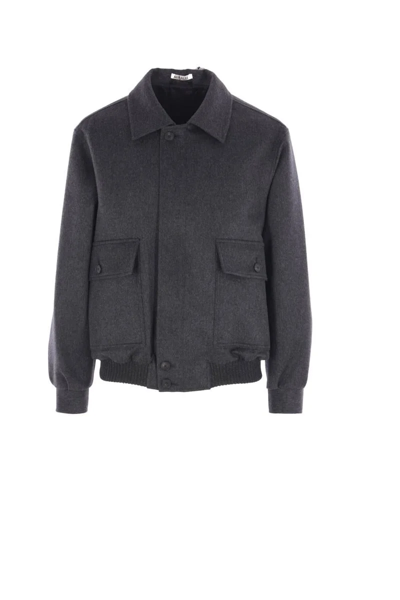 Auralee jacket crafted from dark gray cashmere. Features a pointed collar, front zip and button closure, flap pockets, long sleeves, and ribbed knit edges. Fully lined interior. Gender: Men Material: CASHMERE 100% Color: TOP CHARCOAL Made in: Imported Product ID: A25AB03CMTOPCHARCOAL *Import tax/duty will be calculated at checkout (If applicable)