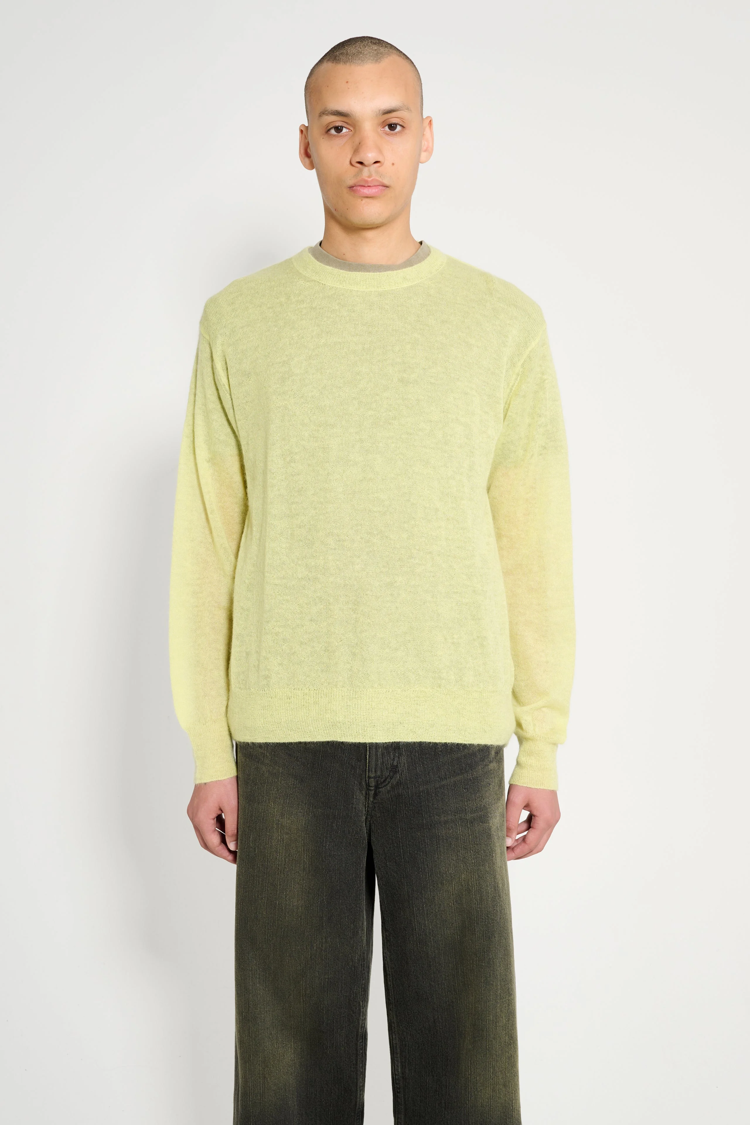 AURALEE KID MOHAIR SHEER KNIT P/O LIME YELLOW