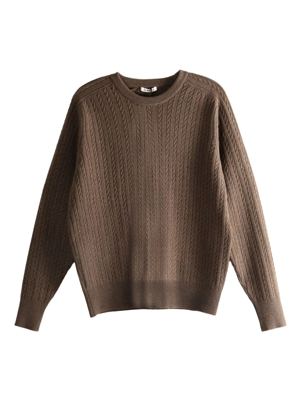 cable-knit crew-neck sweater Highlights - Brown - Cable knit - Crew neck - Ribbed hem - Ribbed cuffs - Long sleeves Imported Composition Wool 100% Washing instructions Read Manufacturer Guidelines