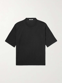 Auralee's designs are crafted using raw materials carefully sourced from all over the world. This cashmere T-shirt has a relaxed fit enhanced by dropped shoulders. Wear yours with jeans or tailored trousers. Size & Fit - Size 3 = XS, 4 = S, 5 = M - Fits true to size, however those who are between sizes should take the smaller size - Designed for a relaxed fit - Fine knit - Model is shown wearing a 4 - Model measures: chest 38"/ 96cm, height 6'3"/ 191cm Details & Care - Black cashmere - 100% cashmere - Dry clean
