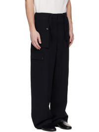 Lightweight extra-long staple cotton- and wool-blend gabardine cargo pants. · Wide-leg · Cinch straps at waistband · Four-pocket styling · Creased legs · Cargo pocket at outseam · Zip pocket at outseam Supplier color: Black 60% cotton, 40% wool. Made in Japan 252484M188002
