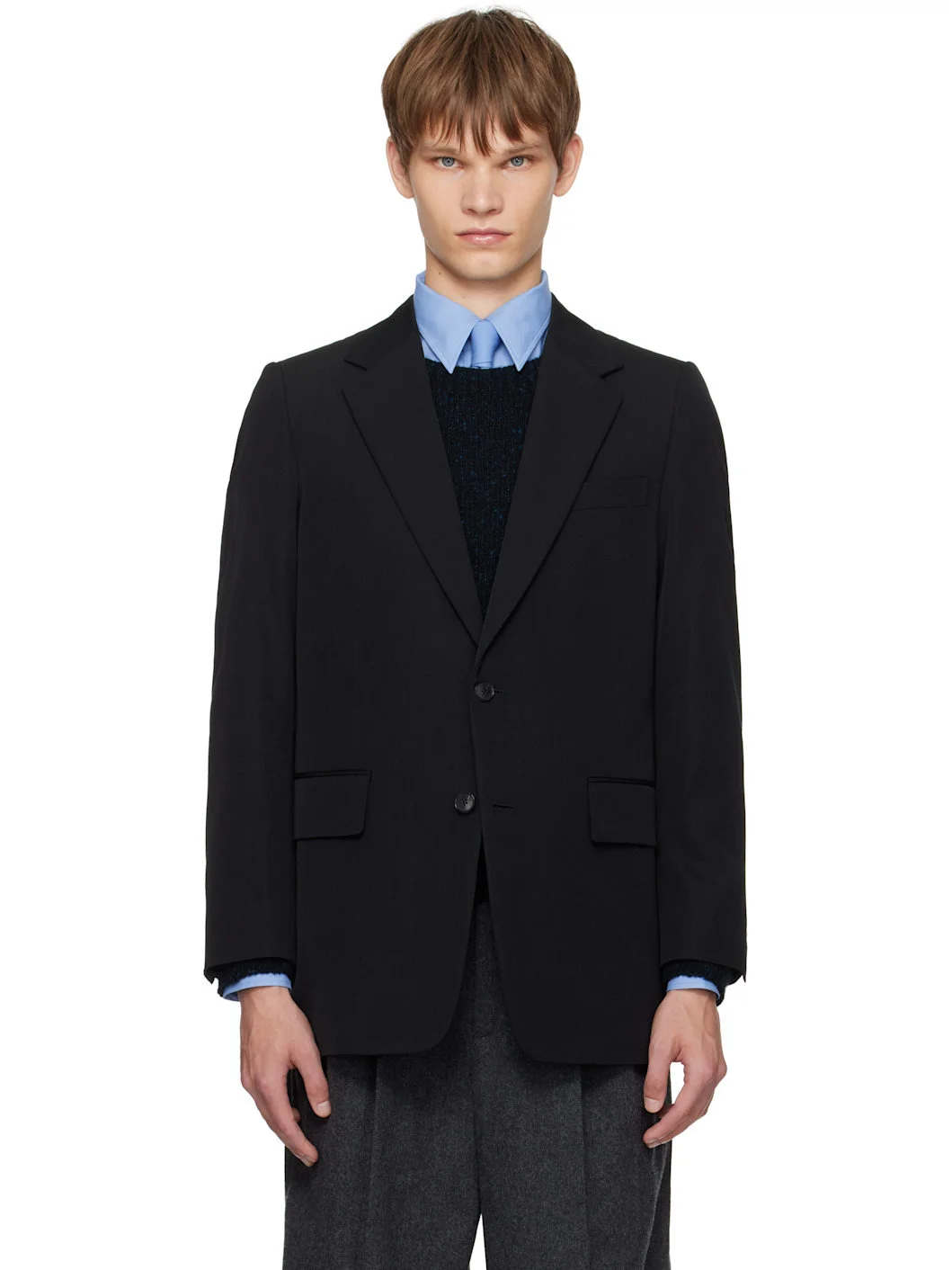Lightweight wool gabardine blazer. · Water-repellent · Notched lapel · Button closure · Welt pocket at chest · Flap pockets at waist · Surgeon's cuffs · Welt pockets at interior · Full satin lining Supplier color: Top black Body: 100% wool. Lining: 100% cupro. Made in Japan 252484M195004