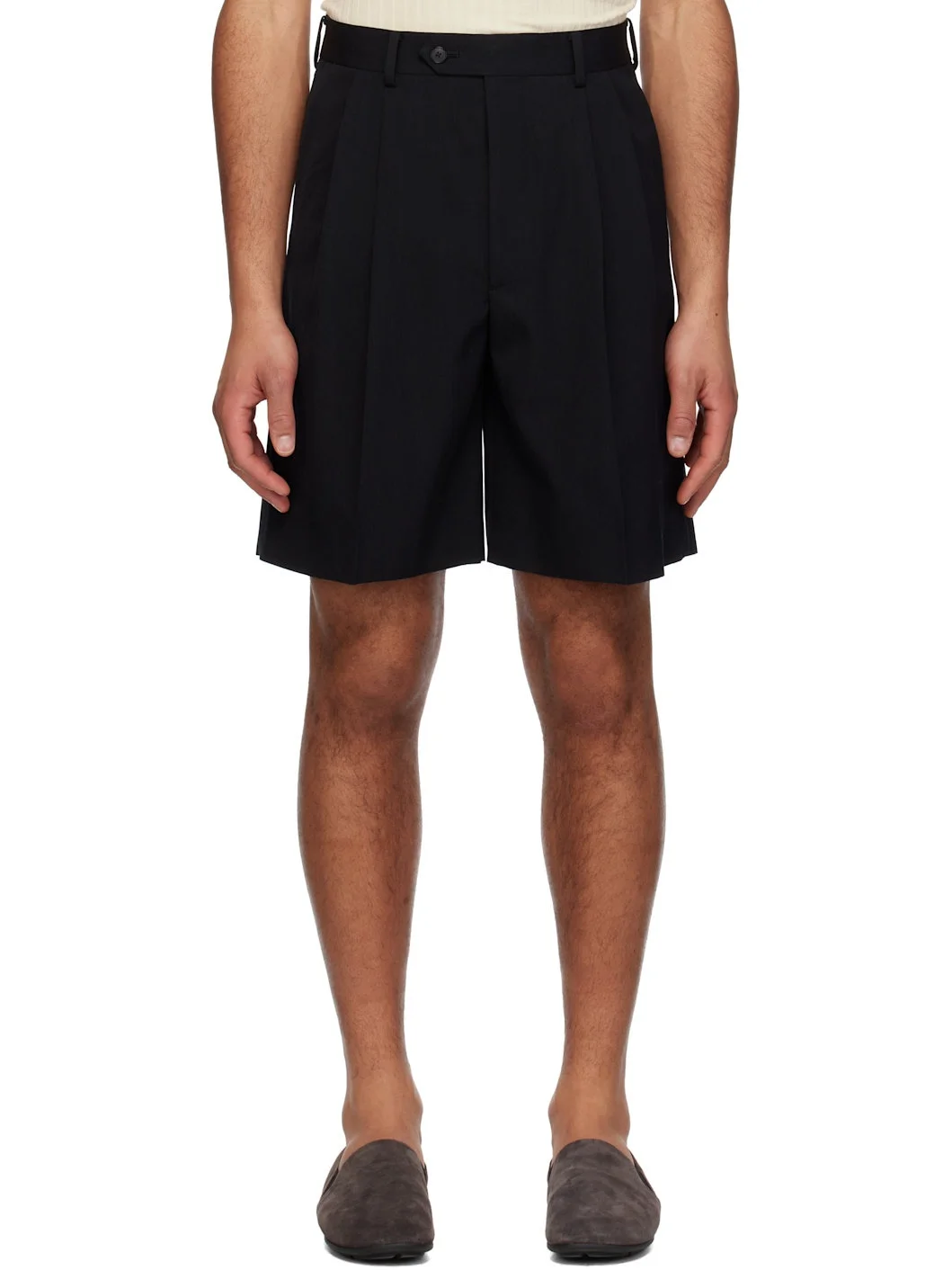 Wide-leg Super 140s wool gabardine shorts. Water-repellent and wrinkle-resistant. · Belt loops · Four-pocket styling · Zip fly · Twin pleats at front · Creased legs Supplier color: Top black 100% wool. Made in Japan 251484M193008