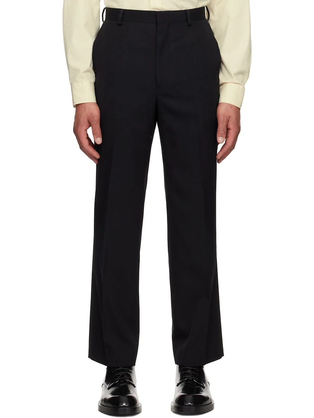 Straight-leg wool gabardine trousers. · Belt loops · Four-pocket styling · Zip-fly · Creased legs · Partial cupro satin lining Supplier color: Top black Body: 100% wool. Lining: 100% cupro. Made in Japan 251484M191022