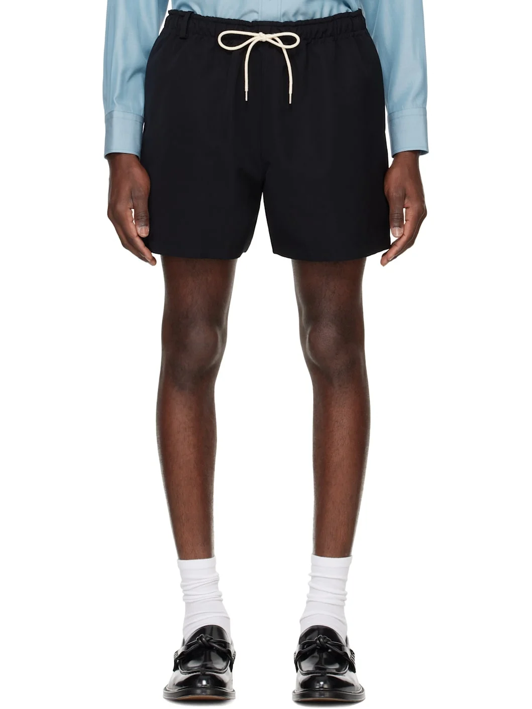 Wide-leg super 120s wool canvas shorts. - Drawstring and belt loop at elasticized waistband - Three-pocket styling Supplier color: Black